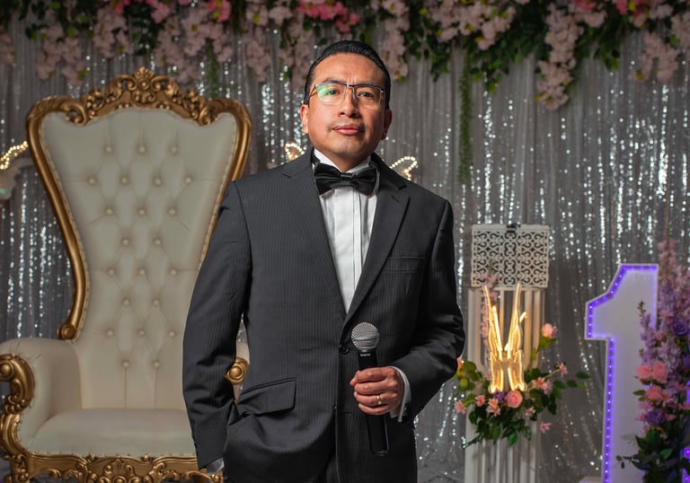 Our master of ceremonies leads each event with professionalism and charisma, ensuring a smooth and elegant flow, with attention to detail and a warm presence.