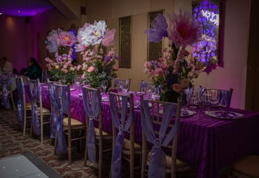 From elegant table settings to full venue styling, we create cohesive and memorable atmospheres that elevate celebrations with creativity and sophistication